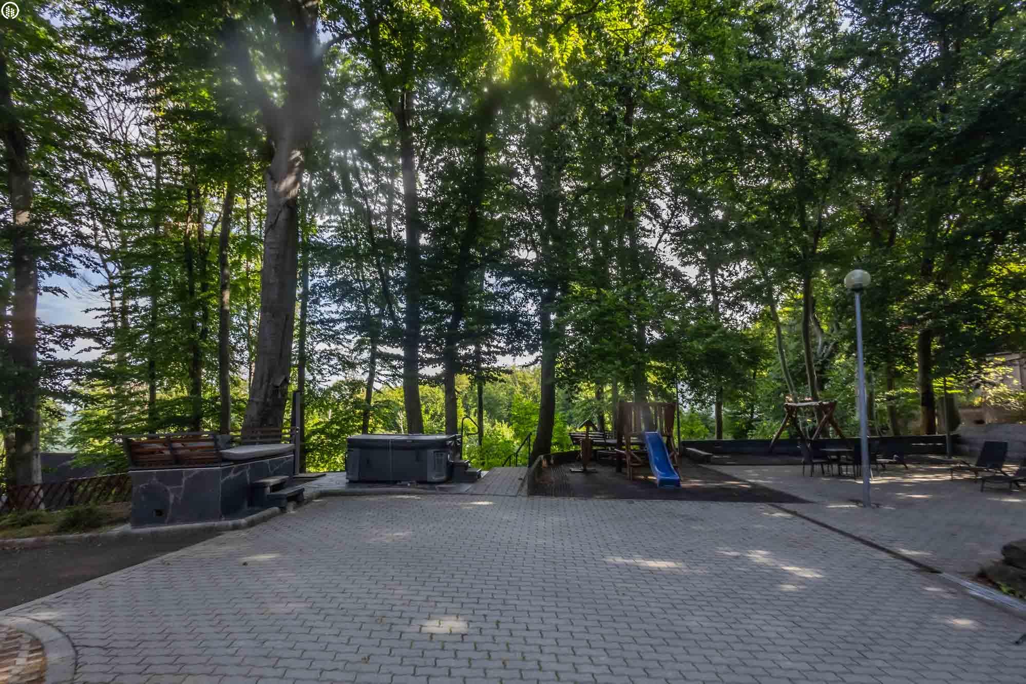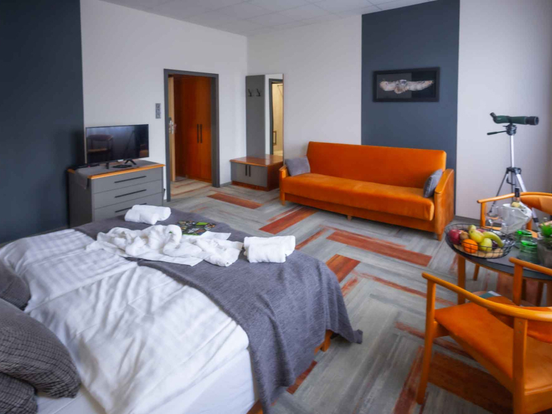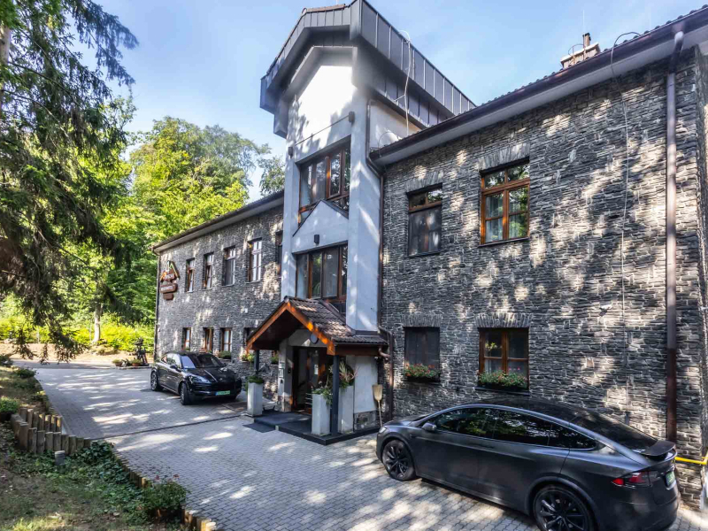 A háromszintes épület elbűvölő természeti környezetben, háromcsillagos körülményekkel várja a nyugalomra, pihenésre vágyókat, az aktív kikapcsolódás szerelmeseit és a csapatösszetartásra érkezőket.