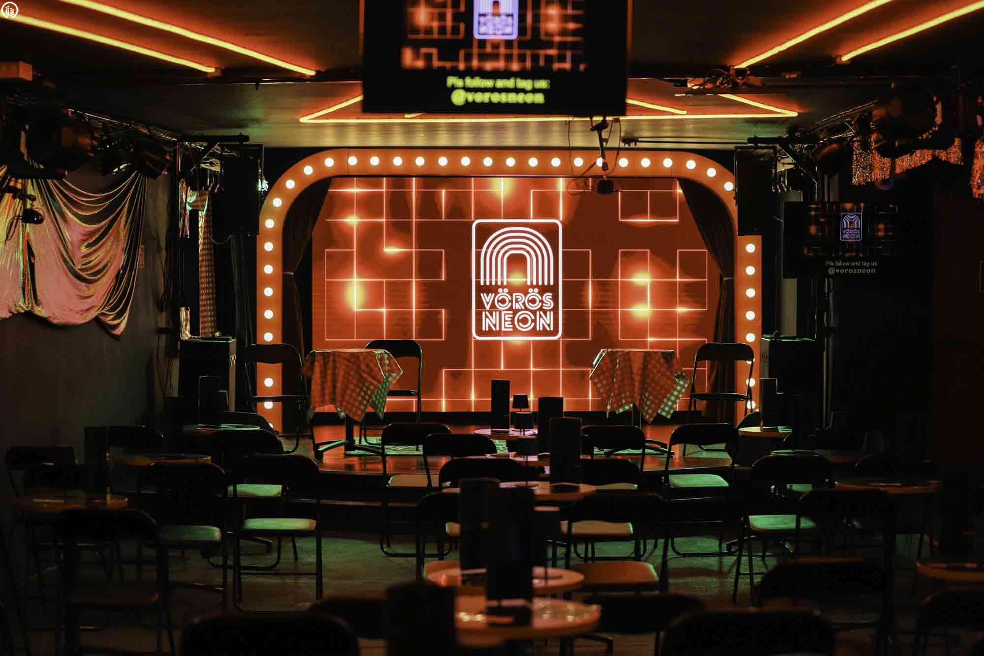 A Vörös Neon Budapest szívének izgalmas találkozópontja, ahol a klasszikus kabaré, a látványos varieté, lenyűgöző drag show-k, stand-up fellépések és a színházi élmények világa kel életre. A élő koncertek után hajnalig tartó tánc vár. A páratlan hangulatot a bárpult minőségi italkínálata és a helyben sült, prémium nápolyi pizzák teszik teljessé.