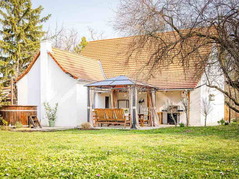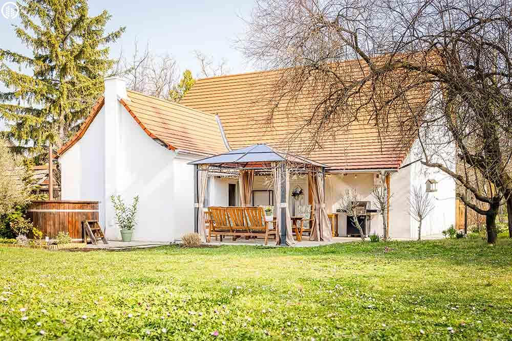 A házikót egy tágas, teljesen körbekerített kert veszi körül, ahol a pihenés, a játék és a nyugodt feltöltődés egyaránt helyet kap. A teraszon fatüzelésű dézsafürdő és grill vár, így egy hosszú nap után tökéletesen kikapcsolódhattok – akár egy pohár bor társaságában.