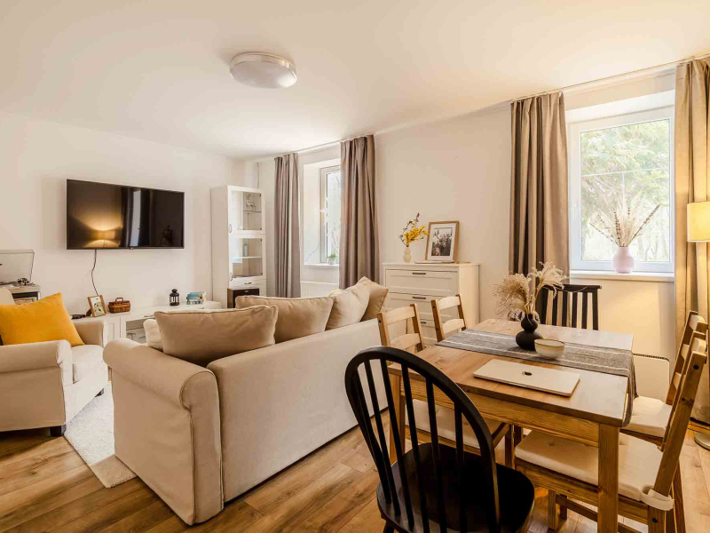 A Füge Házikó kialakítását a skandináv stílus ihlette: letisztult, világos terek, természetes anyagok és kényelmes, minőségi berendezés gondoskodik arról, hogy már az első pillanatban otthon érezzétek magatokat.