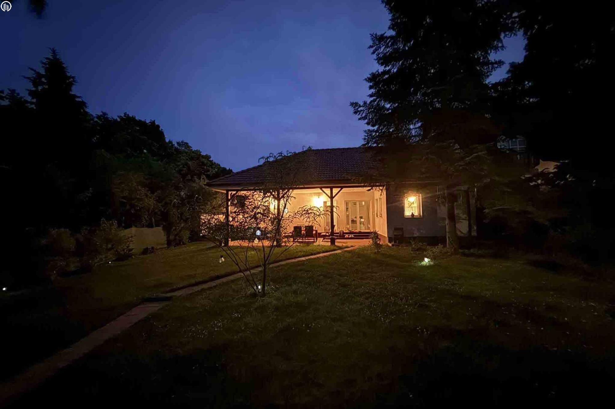 A dézsa felett hangulatos esti fények, kerti pad fokozzák az élményt, továbbá italtartót és nyakpárnákat is elhelyeztünk a teljes relaxációhoz. A dézsát előmelegítjük érkezésre díjmentesen.