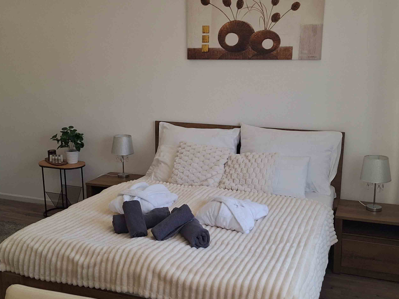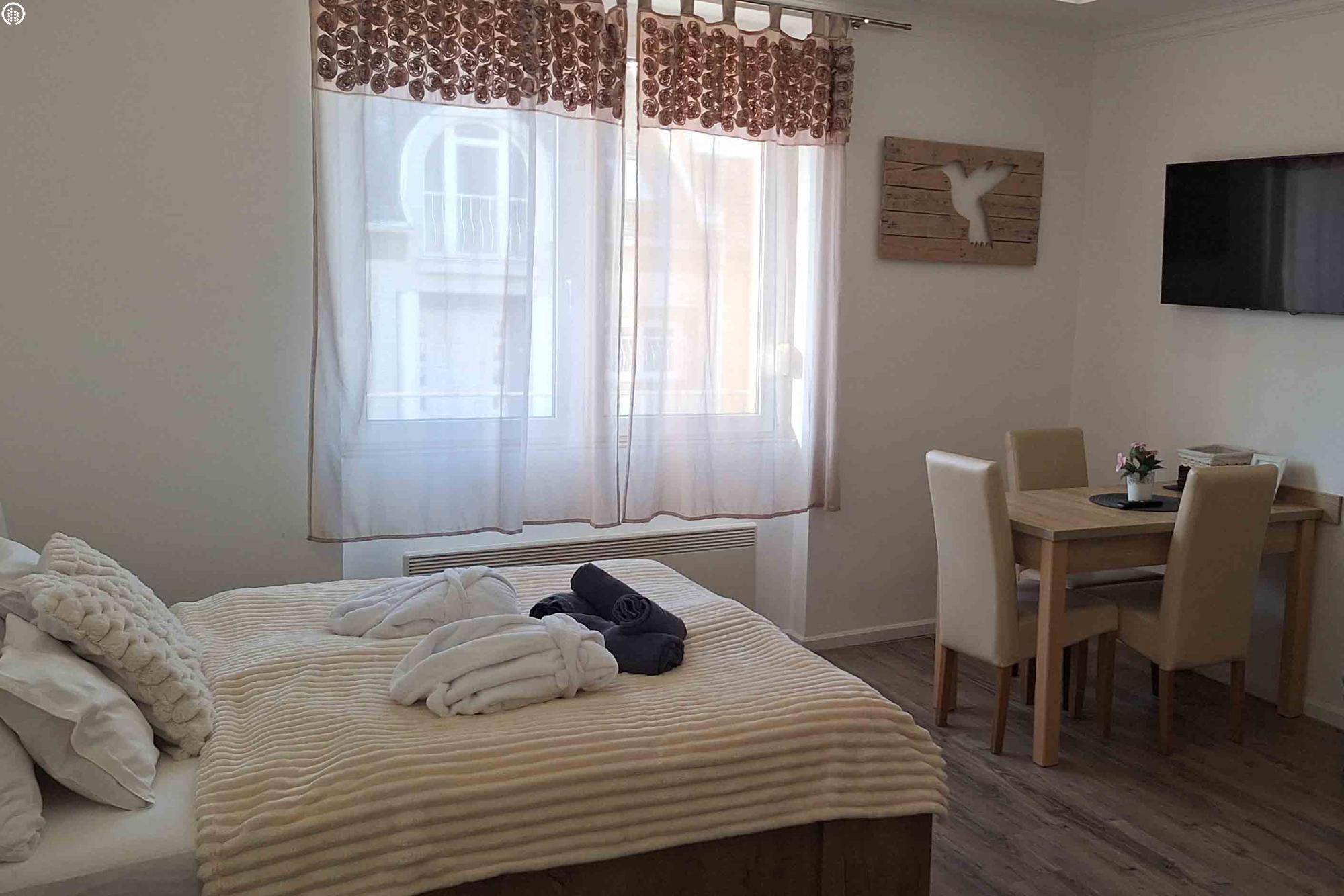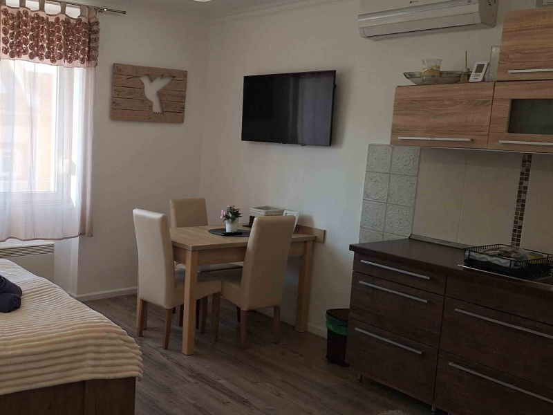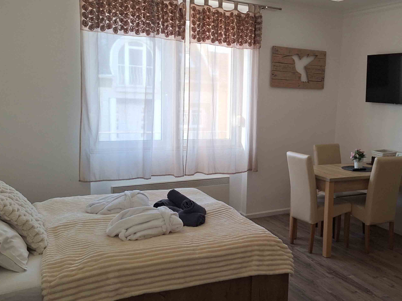 Az apartman a belső udvarra néz, terasszal, 1 hálószobával és nappalival rendelkezik. Síkképernyős TV, jól felszerelt konyha (mikrohullámú sütővel és kenyérpirítóval), valamint zuhanyzós fürdőszoba szolgálja a kényelmet. Törölköző és ágynemű is bekészítve várja a vendégeket.