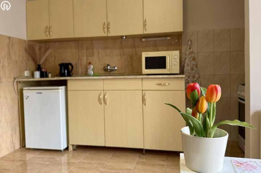 Az apartman teljes felszereltséggel vár: saját konyhával, privát fürdőszobával és hangulatos terasszal, amely ideális a nyugodt kikapcsolódáshoz.